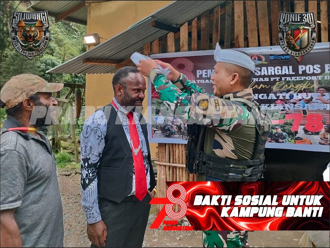 Papua-eltaranews.com. Dalam rangka HUT ke-78 Yonif 301/PKS, Pos Banti Satgas Pamobvitnas PT Freeport Indonesia Yonif 301/PKS menggelar bakti sosial di Kampung Kimbeli, Distrik Tembagapura, Kabupaten Mimika, Papua Tengah, Minggu (22/02/2026). Kegiatan ini meliputi pembagian paket sembako (beras, kopi, gula, teh, dan mie instan), snack untuk anak-anak, pembagian Alkitab, serta topi khas Sunda (KDM). Suasana penuh […]