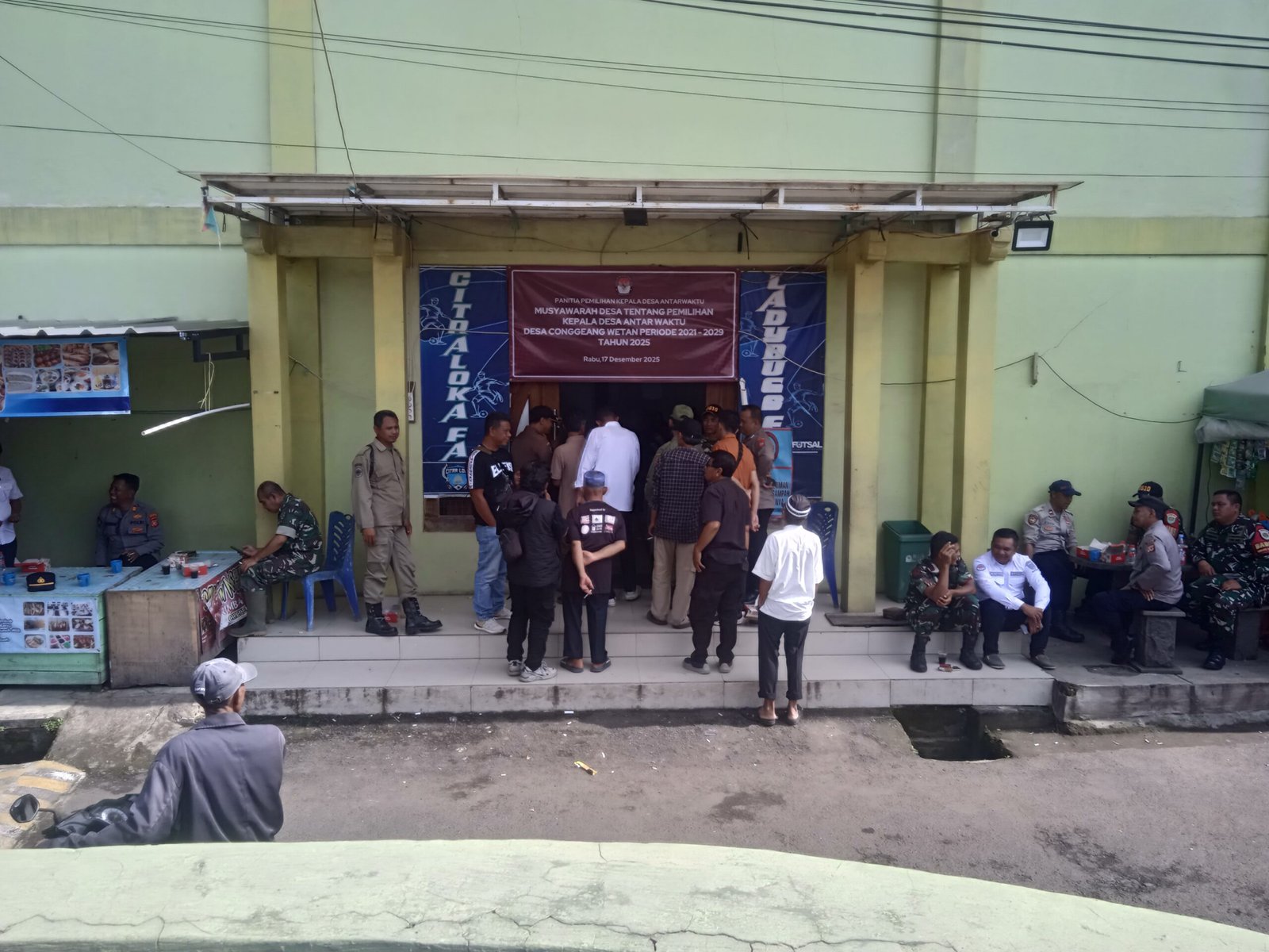 Pemilihan Kepala Desa Pengganti Antar Waktu (PAW) Desa Conggeang Wetan, Kecamatan Conggeang, Kabupaten Sumedang, berlangsung lancar di GOR Desa Conggeang Wetan, Rabu (17/12/2025).