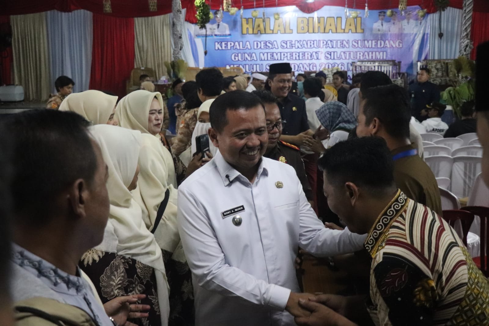 Sumedang – eltaranews.com. Bupati menegaskan pentingnya kolaborasi dan integritas dalam memperkuat pembangunan desa saat menghadiri Halal Bihalal bersama dan kepala desa se-Kabupaten di Gedung Serba Guna Tegar Beriman, Desa Cikoneng, Kecamatan Ganeas, Kamis (23/4/2026).