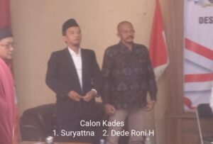 “Puji syukur ke hadirat Allah Subhanahu wa Ta’ala, pada hari ini kita dapat melaksanakan tahapan Pemilihan Kepala Desa PAW di Desa Ganeas. Dalam pelaksanaan ini terdapat dua calon, yaitu Bapak Suryatna dan Bapak Dede Roni H,” ujarnya.