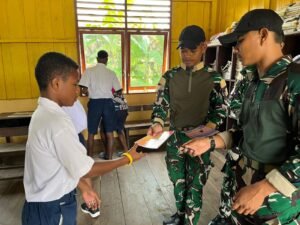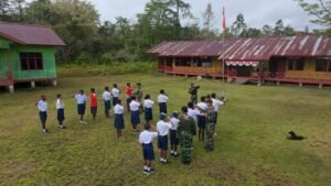 Kunjungan ini dipimpin langsung Danpos Kiliarma, Letda Inf Amirul Nur Agustian, dengan agenda memberikan motivasi belajar sekaligus pelatihan Peraturan Baris Berbaris (PBB) bagi para siswa. Tak hanya itu, prajurit juga membagikan buku dan alat tulis sebagai bentuk dukungan agar semangat belajar tetap menyala.