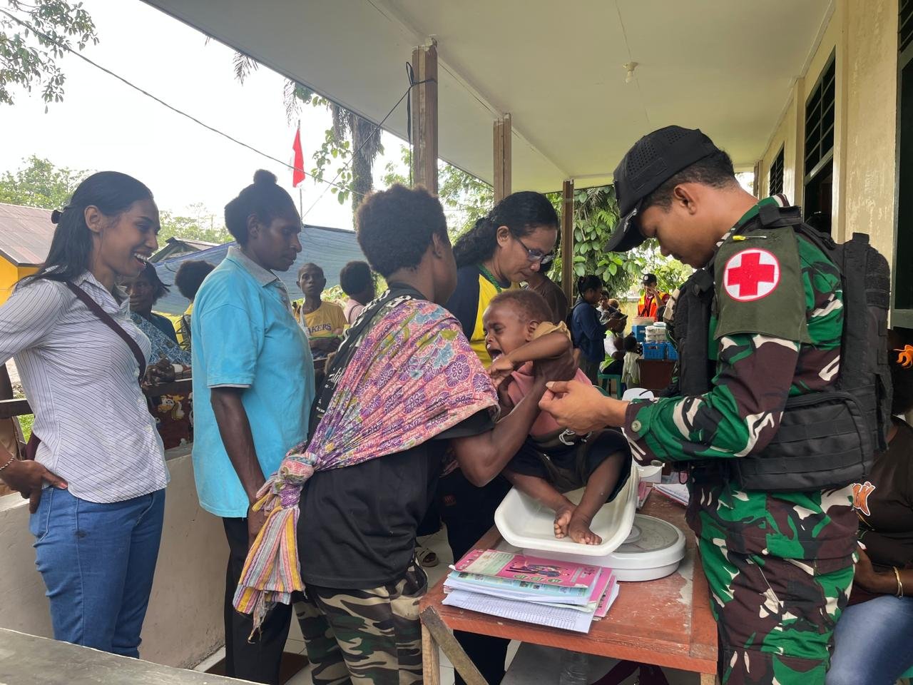 Satgas Yonif 301/Pks Pos Nayaro akan hadir di tengah masyarakat salah satunya dengan turut serta pelayanan Posyandu dalam rangka menurunkan angka stunting di Kap Nayaro.